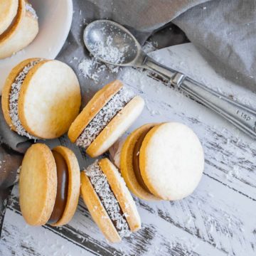 Una última sugerencia: si te animas a usar el dulce de leche tradicional, te vendrá de maravilla pasar los bordes de los alfajores por coco rallado.